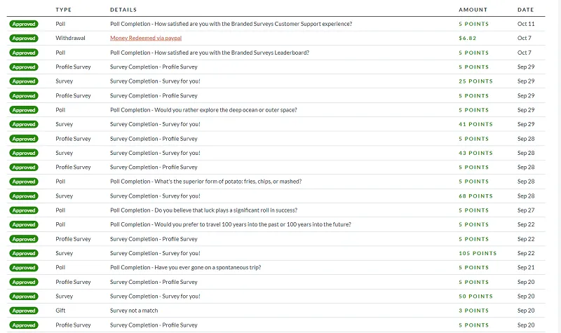 In total, I earned $6.82, which I successfully withdrew via PayPal. Branded Surveys paid me within a few days.