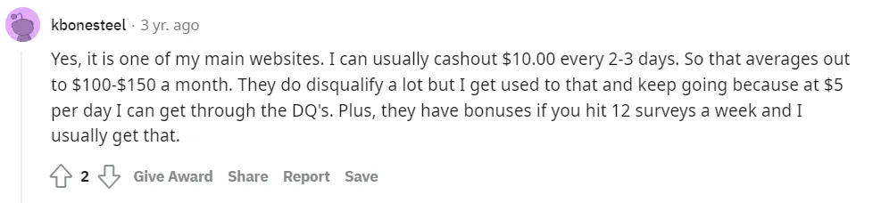 .“Lots of survey disqualifications but still one of my top earners.”