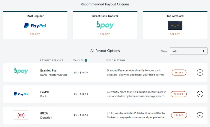 .Rewards: PayPal, bank transfer, dozens of gift cards