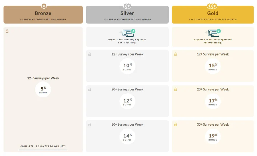 One of the best features of Branded Surveys is its loyalty system, which gives you bonus points depending on how active you are: