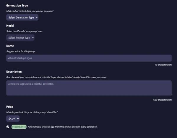 After your listing goes live, earnings depend entirely on demand. Promoting your prompts on social media can significantly improve your chances of making sales.