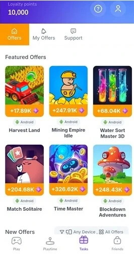Cuze also provides paid offers, but unlike most GPT platforms, all of their offers are game-based as well. Each offer includes several tasks, and you can choose which ones to complete.