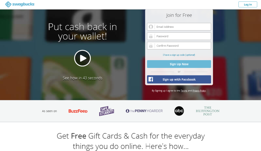Creating an account on Swagbucks is completely free. Once you sign up, you can start earning points — called SBs — immediately.