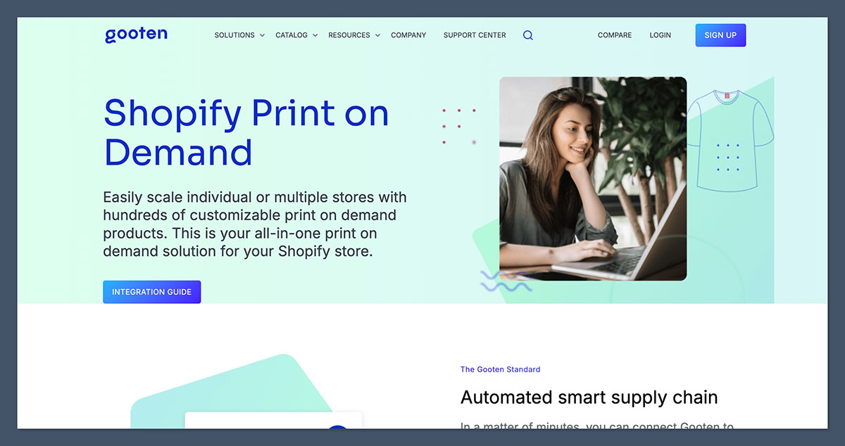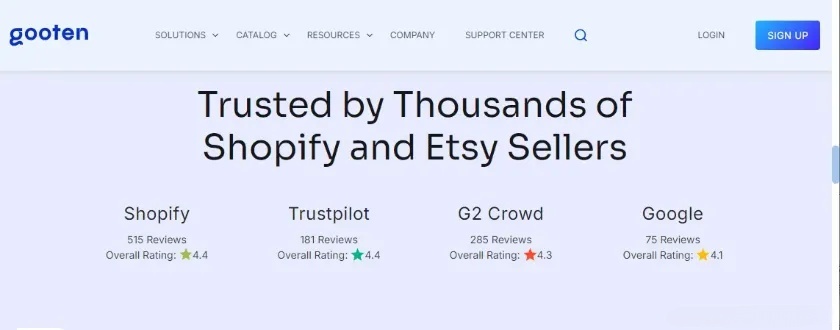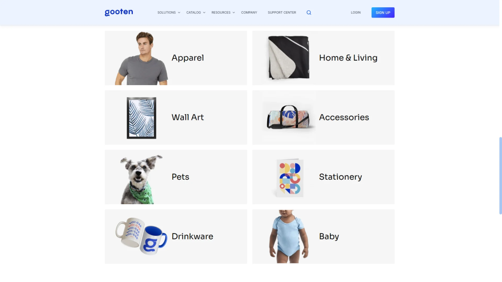 Gooten is a U.S.-based print-on-demand and supply-chain management company that helps sellers create and dropship customized products. The platform offers 400+ items, including apparel, home decor, accessories, and over 120 exclusive products not available from competitors.