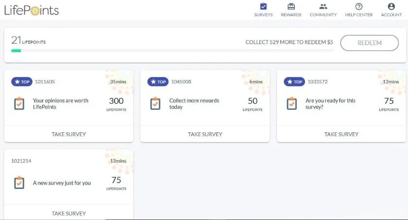 Earning points is straightforward. New surveys appear on your dashboard regularly, and you can pick whichever ones you want to complete.