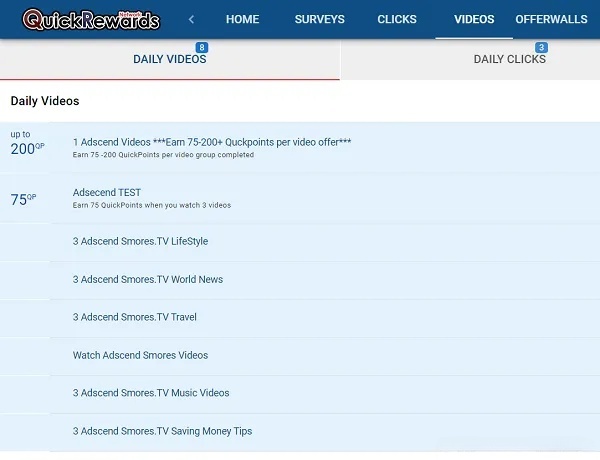 If you prefer passive earnings, QuickRewards pays you for watching videos and ads.