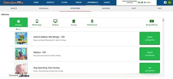 QuickRewards is especially good for beginners due to the instant withdrawals, but using several sites increases your overall earning potential.