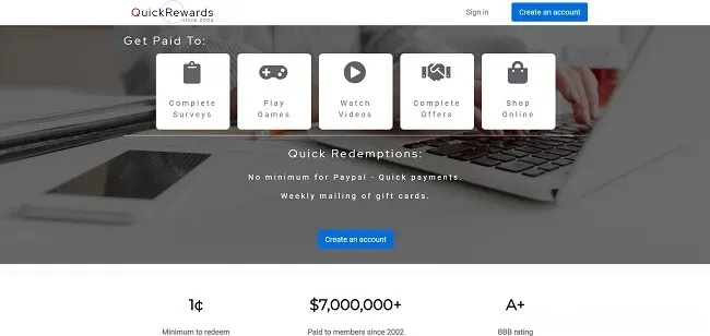QuickRewards.net is a rewards and paid survey website where members earn money by: