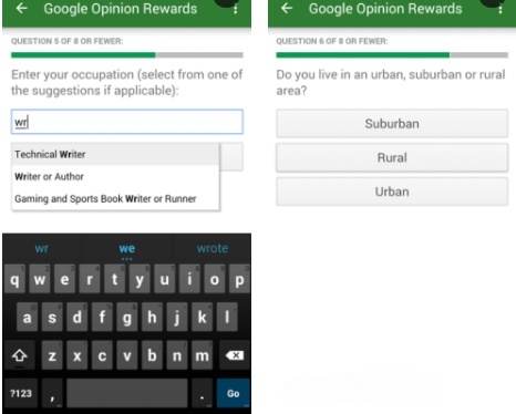 Surveys usually take around 10 seconds to finish, and each one pays a few cents. Over time, these credits add up, eventually letting you buy items in the Google Play Store at no cost.