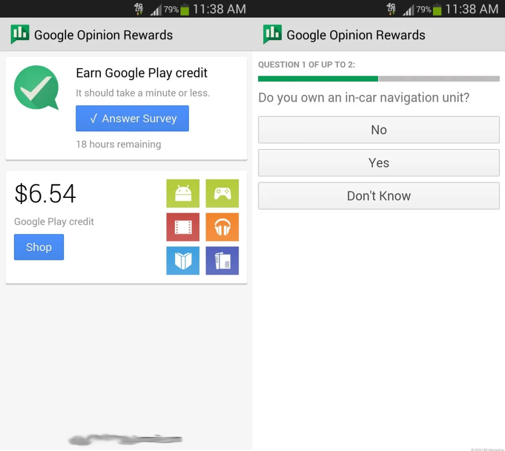 If you want to get apps, games, movies, TV shows, and books from Google Play for free, then you should definitely use the Google Opinion Rewards app. Each time you complete a short survey, Google rewards you with credits or PayPal cash (depending on your device).
