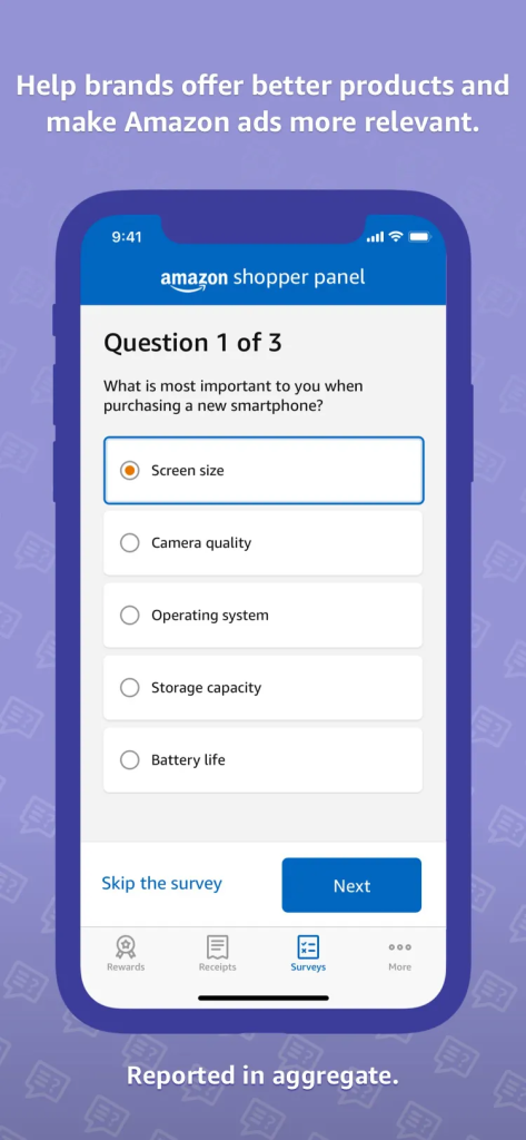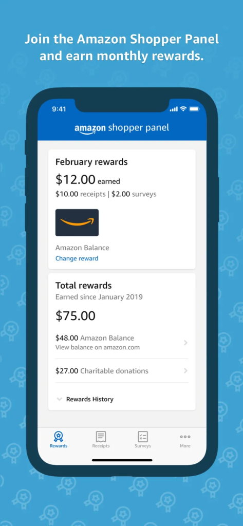 The Amazon Shopper Panel is an invite-only rewards program that pays users to upload shopping receipts and complete short monthly surveys. Payment comes in the form of Amazon account credits or charitable donations.