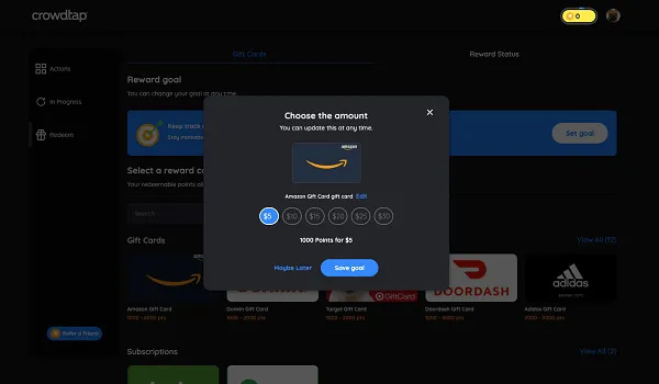 Crowdtap currently offers digital gift cards only — no PayPal or bank withdrawals.