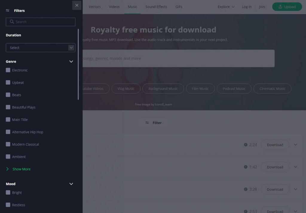 Instead of downloading random songs, it’s important to choose tracks that listeners will actually enjoy. Pixabay categorizes music into genres such as: