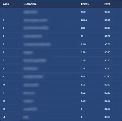 TapNoon hosts a daily leaderboard competition. The top 20 users receive bonus cash, with first place earning $5 and twentieth place receiving $0.30.